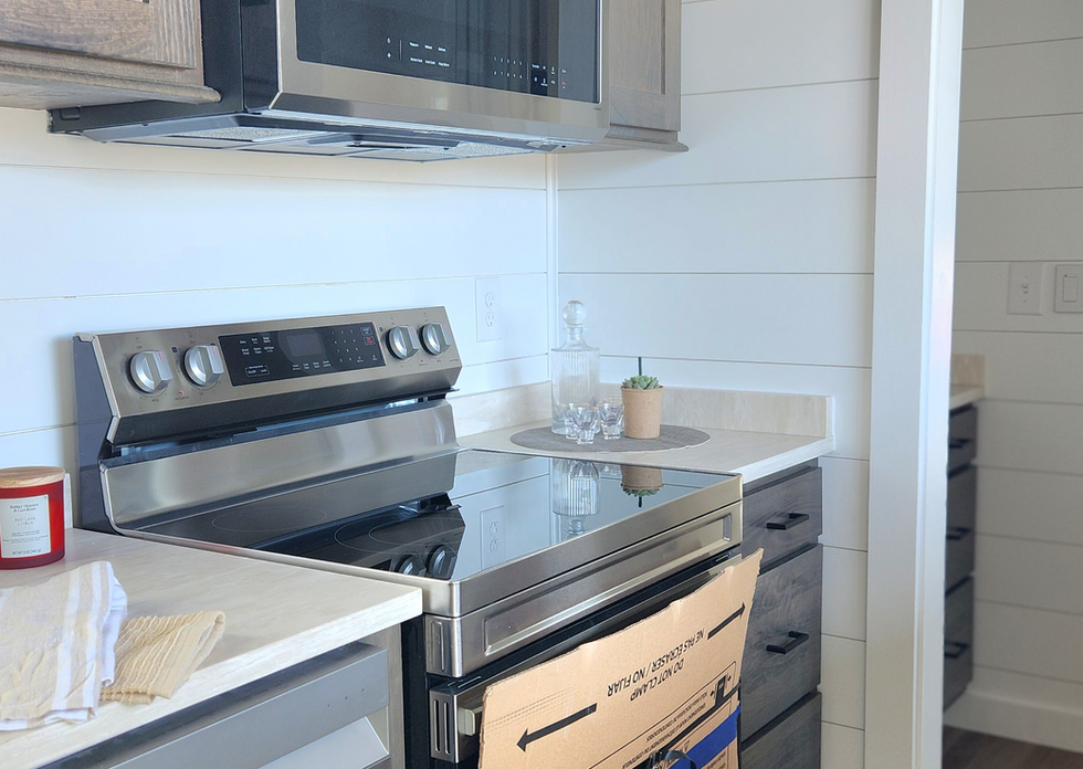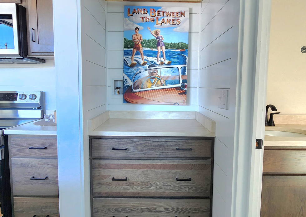 The beautiful appointed kitchen full-size stainless steel appliances, along with a unique pass through window featuring bar seating on both sides-perfect for entertaining.